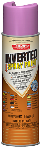 Champion Sprayon® Inverted Paint can be used for handheld applications (accurate marking 5” to 12” above the ground), or with a Champion Sprayon Long or Short Wand. Spray on asphalt, concrete or other paved surfaces, or on dirt, grass or gravel. Lasts 4-6 months, depending upon traffic and exposure.