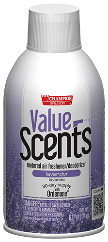 Champion Sprayon® ValueScents completely eliminate unpleasant odors and leave a clean, fresh scent in the air. Contains Ordenone®, a deodorizing ingredient that is an effective odor eliminator. The measured spray deodorizes up to 6,000 cubic feet. Universal spray tip.