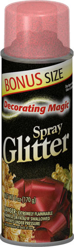 Decorating Magic® Spray Glitter adds sparkle to special-occasion and seasonal items. Convenient one-step spray includes both the adhesive and glitter. The superior adhesion is effective even on irregular surfaces like wreaths, baskets, fresh and dried floral arrangements.